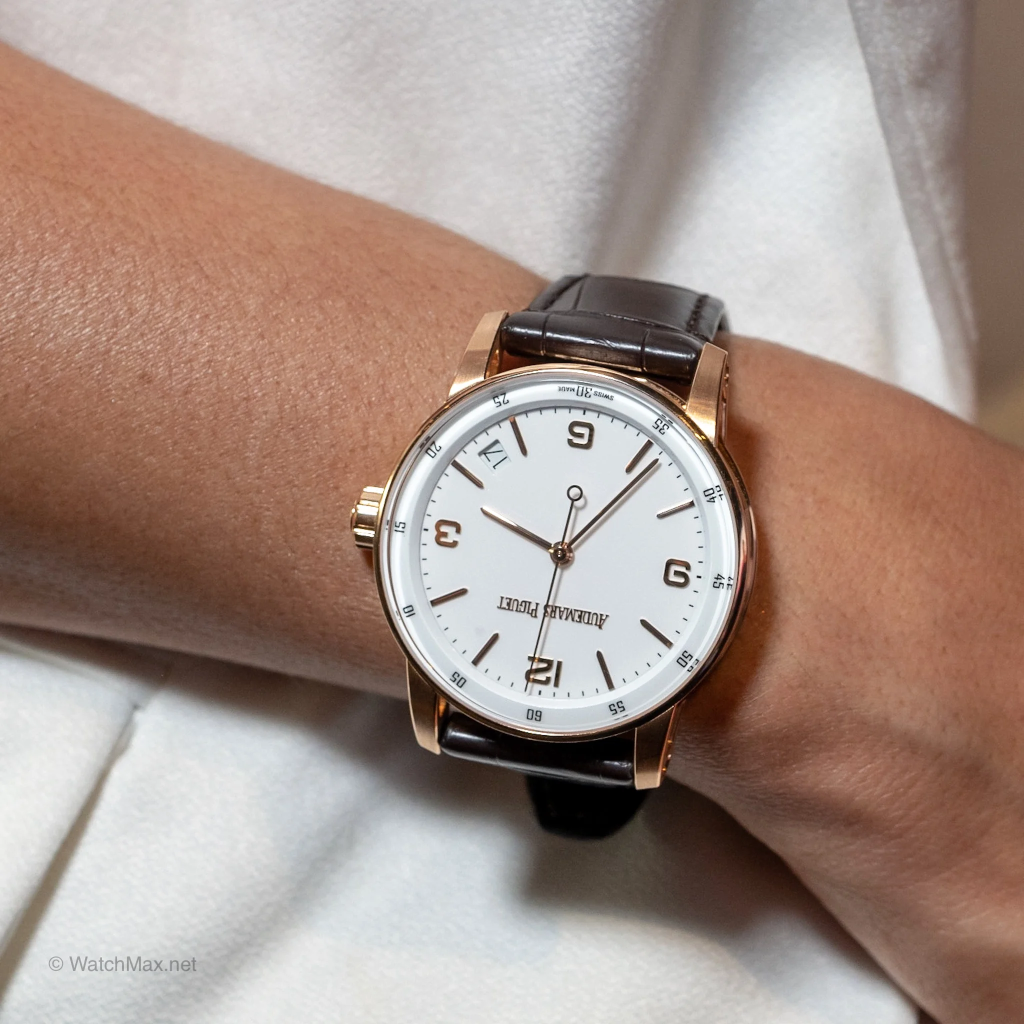 While my preference would be for dark colored dial, the black and blue in these models are of a very deep coloration which makes them hard to photograph and convey in pictures. After seeing all of the models, my preference is for the white one. On wrist they all feel really good and even at 41 mm I can see why AP thinks this watch will be attractive to both men and women. Both models come in at around $25,000.